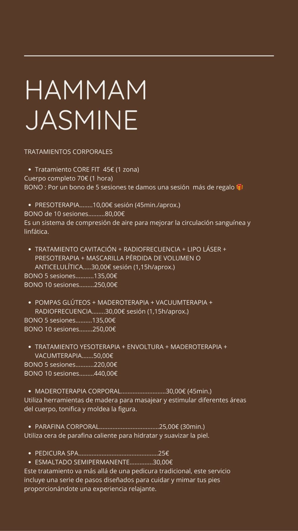 Aqui te ofrecemos muchos de nuestros servicios y sus precios.