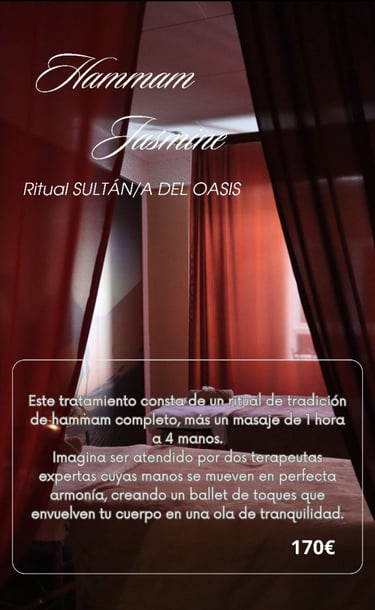 Te invitamos a descubrir la Magia del hammam, donde cada tratamiento es más que un servicio, es un Viaje hacia el Bienestar Total. Regálate ese momento de conexión contigo mismo, porque mereces sentir la Calidez de la Tradición y el poder del Cuidado Personal.