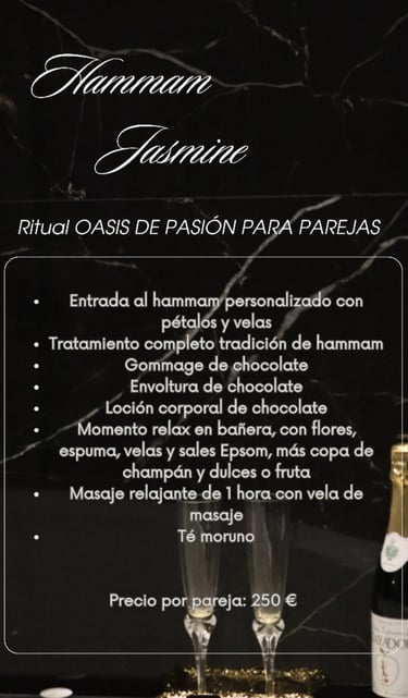 Descubre la magia de compartir momentos únicos con nuestro exclusivo tratamiento de Hamman para parejas, donde el amor y el bienestar se entrelazan en una experiencia sensorial inolvidable. Este ritual esta diseñado para fortalecer la conexión entre dos almas, brindando un espacio de relajación complicidad.
