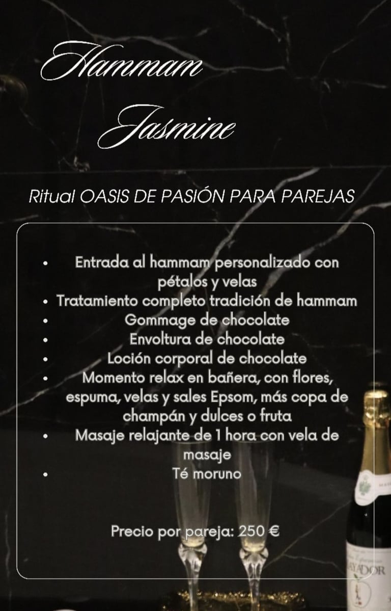 -Privacidad de la sala Hamman para poder realizaros vosotros mismos el ritual 1h (20,00€ por persona) niños hasta 10 años 10,00€ (a partir de 3 personas)