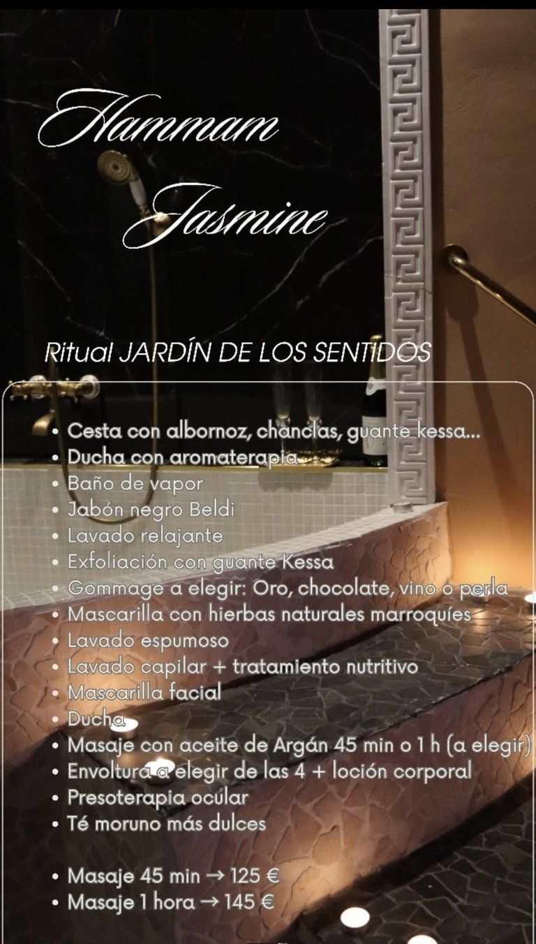 Adéntrate en la herencia milenaria de los Hammams Arabes con este ritual completo. Durante 45/60 minutos cada paso ha sido creado para sumergirte en una experiencia extraordinaria que armoniza el cuerpo y la mente.