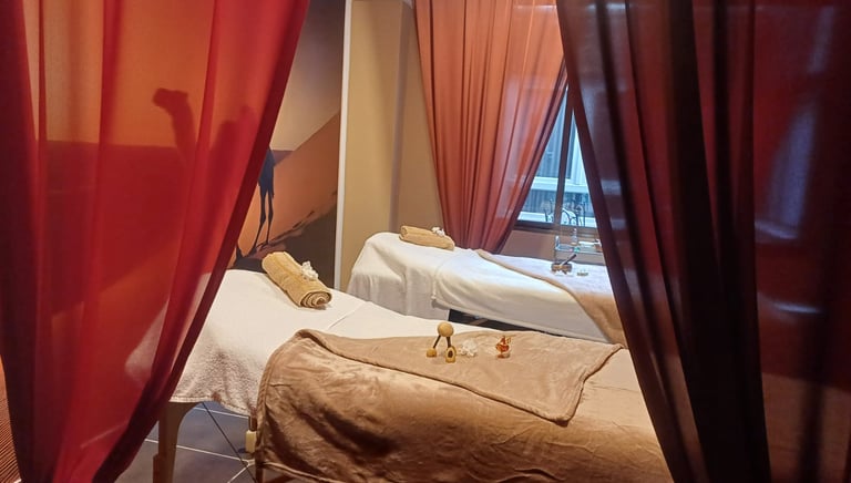 Este tipo de tratamiento es una experiencia única que transforma el arte del Hamam y el del masaje en un deleite sensorial. Imagina ser atendido simultaneamente por dos terapeutas expertas, cuyas manos se mueven en perfecta armonia, creando un ballet de toques que envuelven tu cuerpo en una ola de tranquilidad